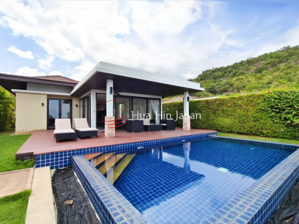 ホアヒン、カオタオビーチ近くの素晴らしい海と山の景色が見える3ベッドルームプールヴィラ販売 ( 借地権のみ )