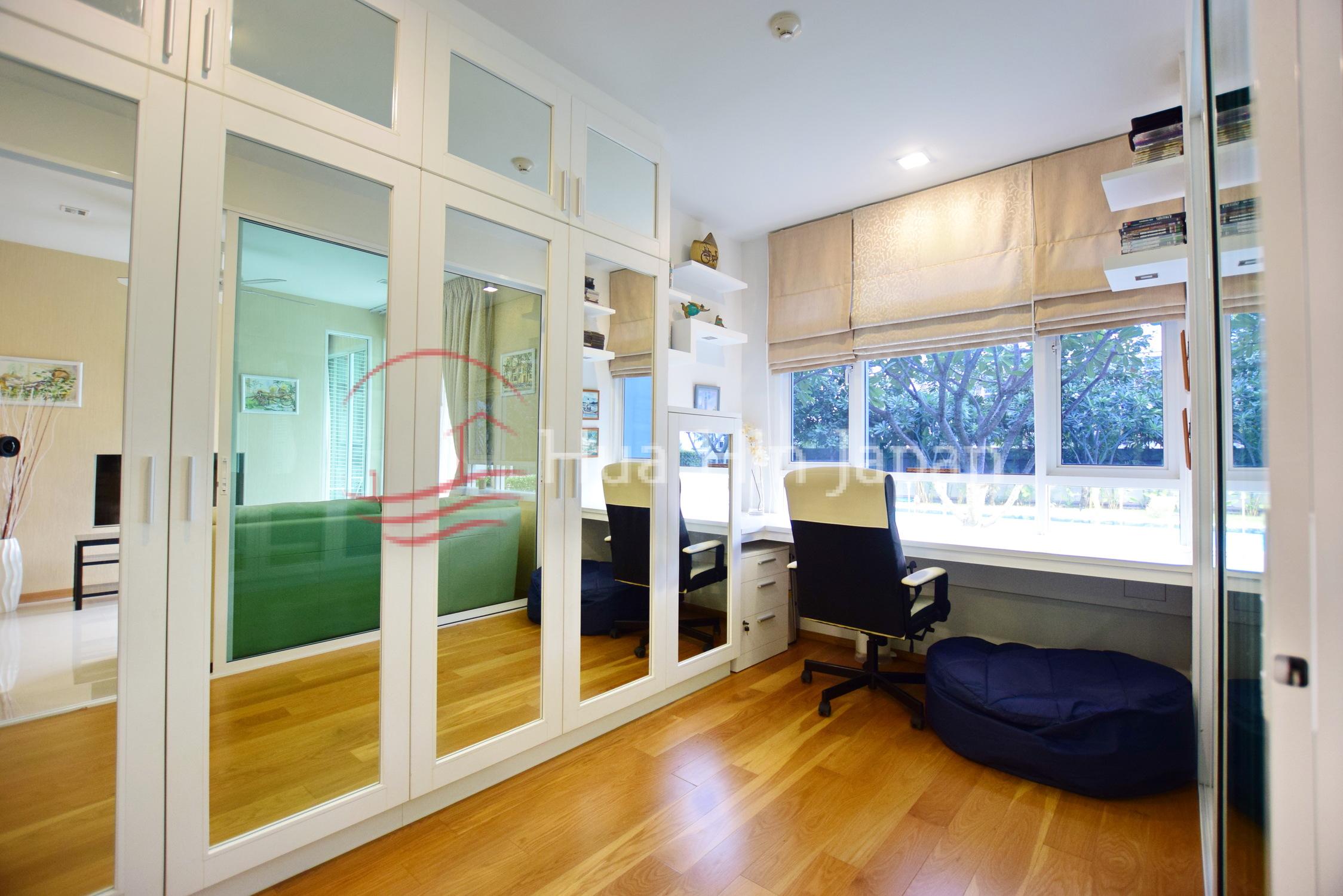 このレジデンスはもともと2ベッドルームユニットとして機能しますが、現在2番目のベッドルームは専用のオフィスまたは書斎スペースとして使用されています。レイアウトには、洗濯機、乾燥機、ウォーター・ディスペンサーを備えた広々としたヨーロピアン・キッチンが含まれています。熱帯の気候でも快適に過ごせるよう、全室にエアコンを設置しています。.