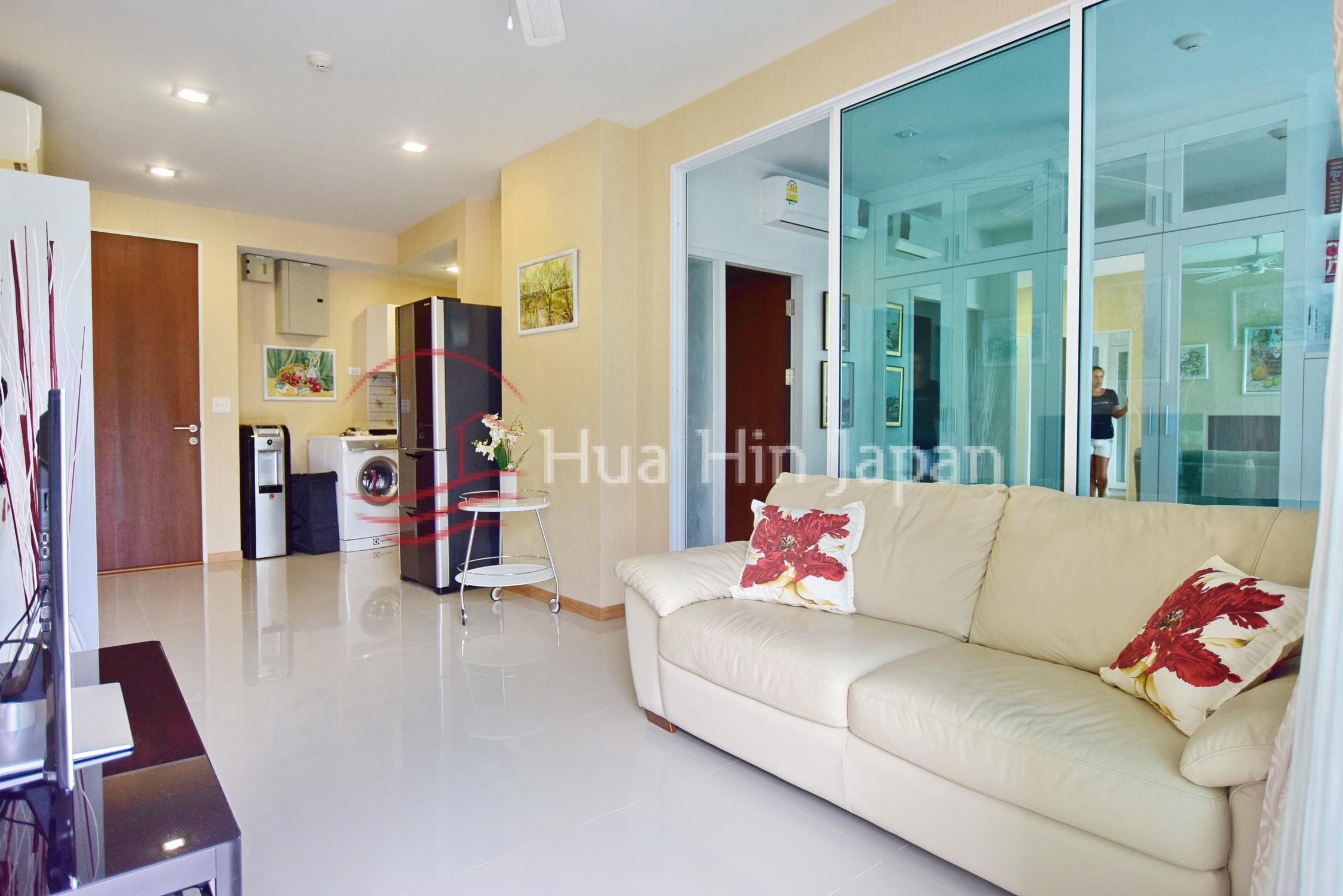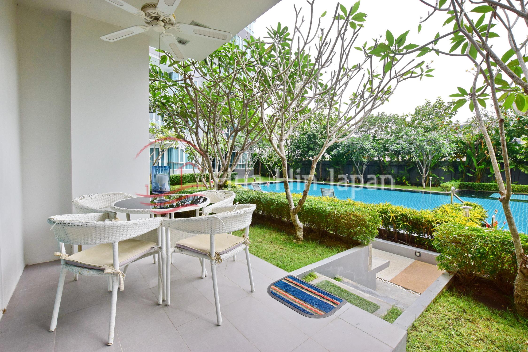 Baan View Vimanは1階の2ベッドルーム、2バスルームユニットで、プライベートテラスから共用プールへすぐにアクセスできます。カオタキアブの穏やかな南部地区に位置し、65m²のこちらのアパートはシーパインビーチゴルフコースに隣接しているため、建物に邪魔されることなく静かな環境を提供しています。.