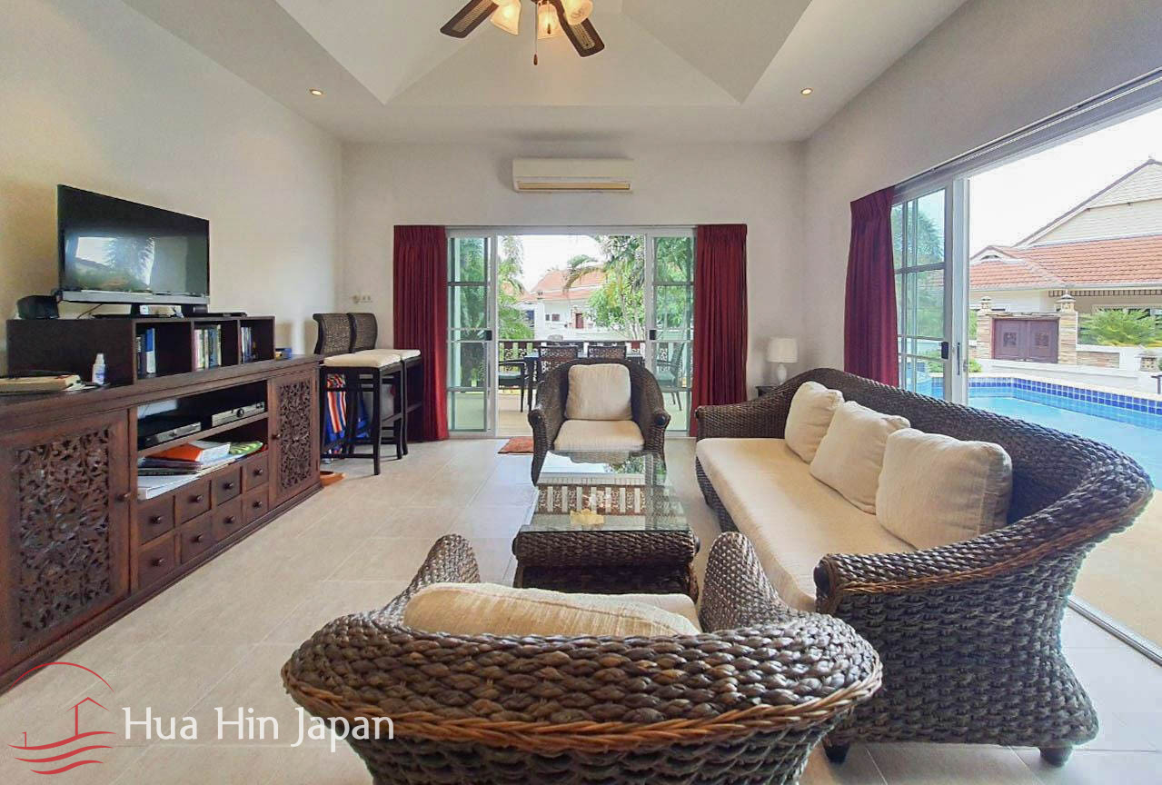 高品質なものを探す ブラックマウンテンホアヒン近くのプールヴィラ 600万バーツ以下の物件はますます珍しくなっています。この住宅は、476平方メートルのゆったりとした土地に、150平方メートルの機能的な居住エリアがあります。改修は、必要不可欠なインフラと美観のアップグレードに焦点を当て、新しい所有者がメンテナンスフリーのライフスタイルを楽しむことを保証します。主な改修点としては、スイミングプールのスキマー濾過システム、高効率のウォーターポンプ、広大な屋外テラスとプールデッキのタイル張りなどが挙げられます。.