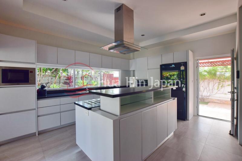 - キッチン、食器洗い機、電気オーブン、ガスコンロ(ガスボトルは敷地外にある)、電子レンジ、アイランドキッチン(片側が昇降式で分割可)、ダブルボウルのシンク。.