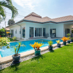 3ベッド、4バスルーム、ホームシアタールームまたは4ベッドルーム付プライベートプールバンガロー。町から約2.5キロ、24時間セキュリティー、プール付の広い共用エリアがある管理プロジェクト内に位置する。.