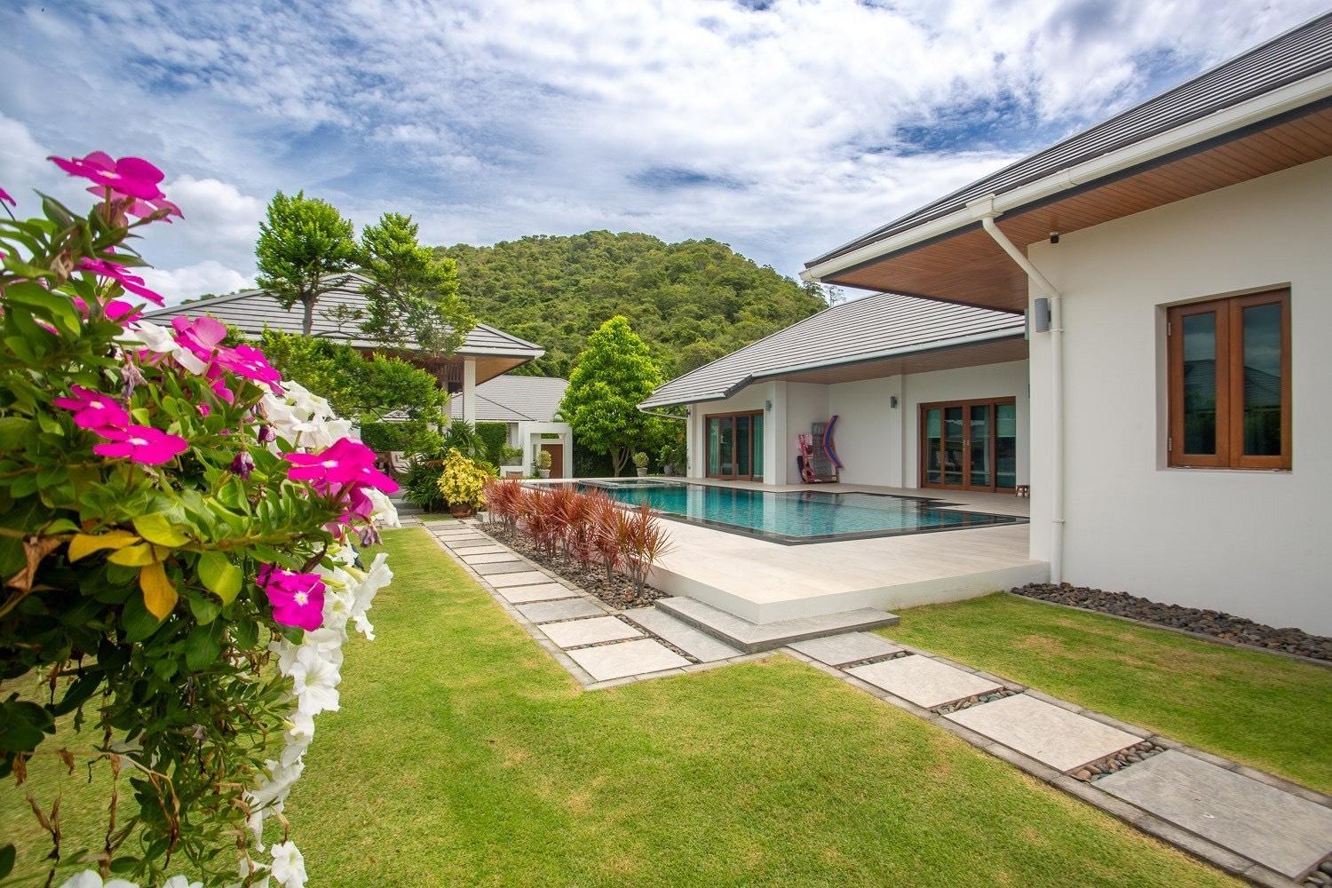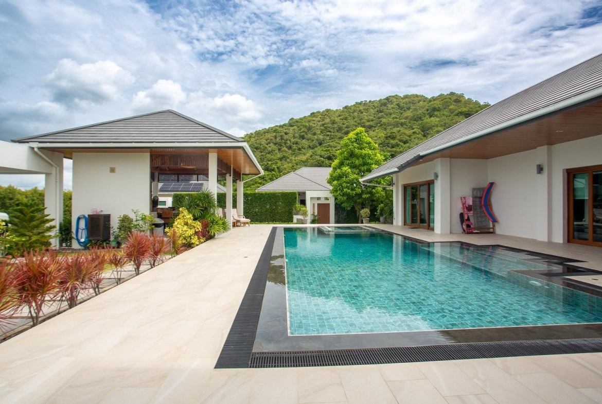 Experience elevated living in this exceptional resale villa located within the prestigious Hillside Hamlet Homes 8 development. Situated on a sprawling 1,324 sqm elevated plot, this property offers a rare combination of privacy, panoramic mountain views, and sustainable modern luxury in the heart of Hua Hin.