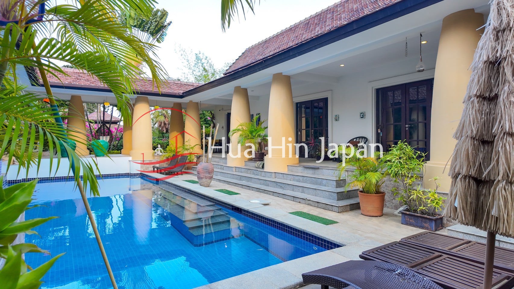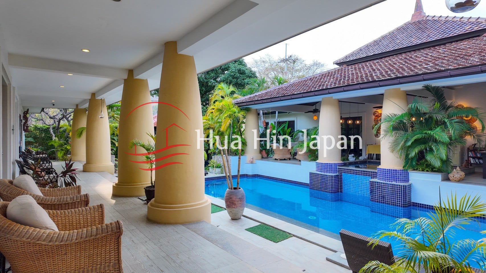 アルトテキスト5ベッドルームバリニーズプールヴィラホアヒン、プライベートプールとトロピカルガーデン付き