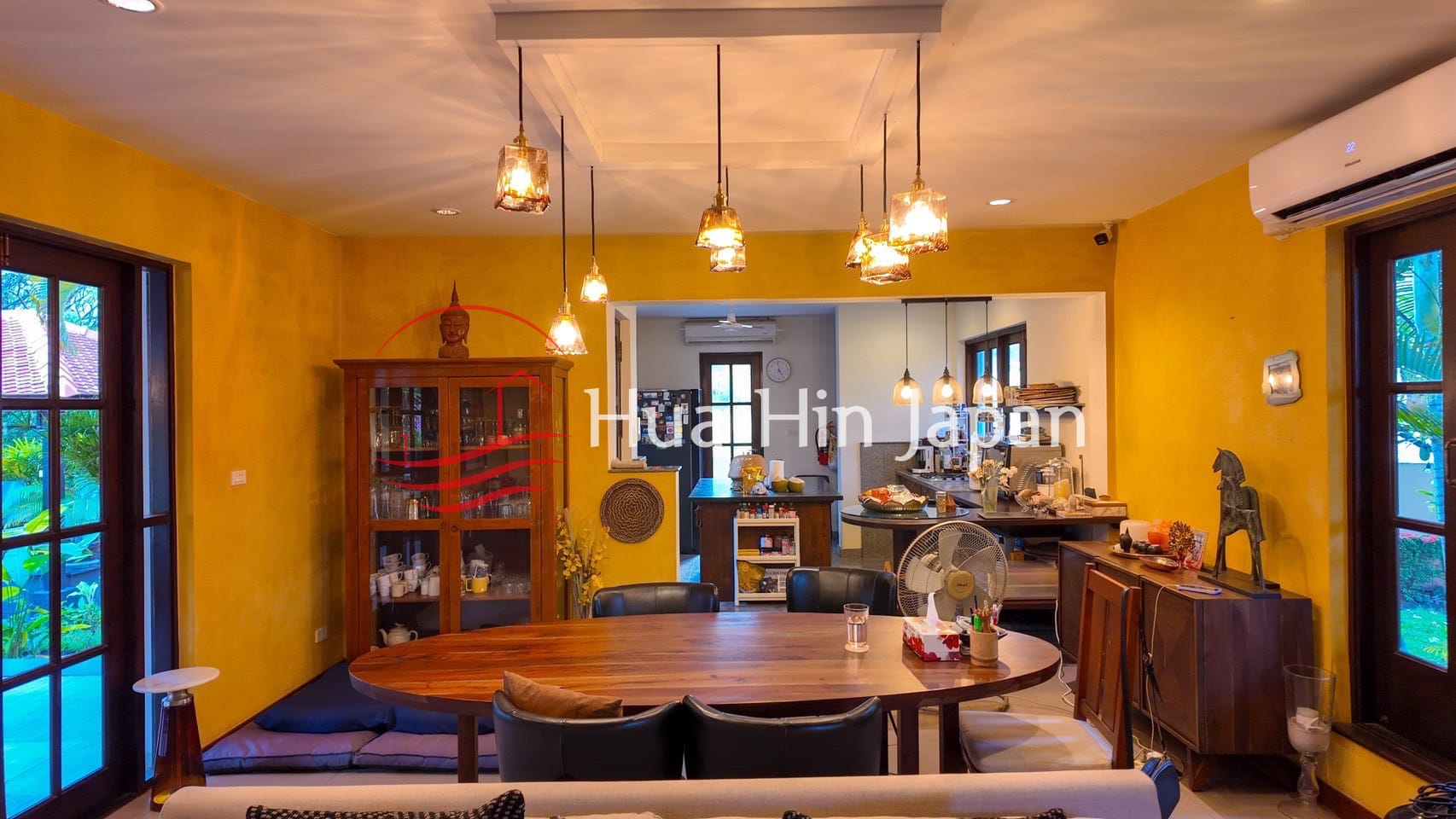 この5ベッドルーム・バリニーズ・プール・ヴィラ・ホアヒンのインテリアは、約550平方メートルの細部まで手入れされたリビングエリアをカバーしています。デザイナーズヨーロピアンキッチンには、一流の電化製品が備え付けられており、おもてなしのための十分なカウンタースペースもございます。ご自宅でプロフェッショナルな環境を必要とされる方のために、独立した専用のワークスペースがあり、リモートワークや創作活動に最適な静かな隠れ家となっています。広々としたベッドルームが5室あり、それぞれ専用のバスルームを備えているため、ご家族やゲストの方にも快適にお過ごしいただけます。.