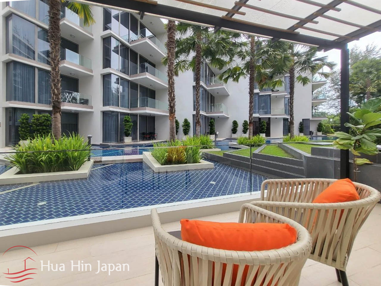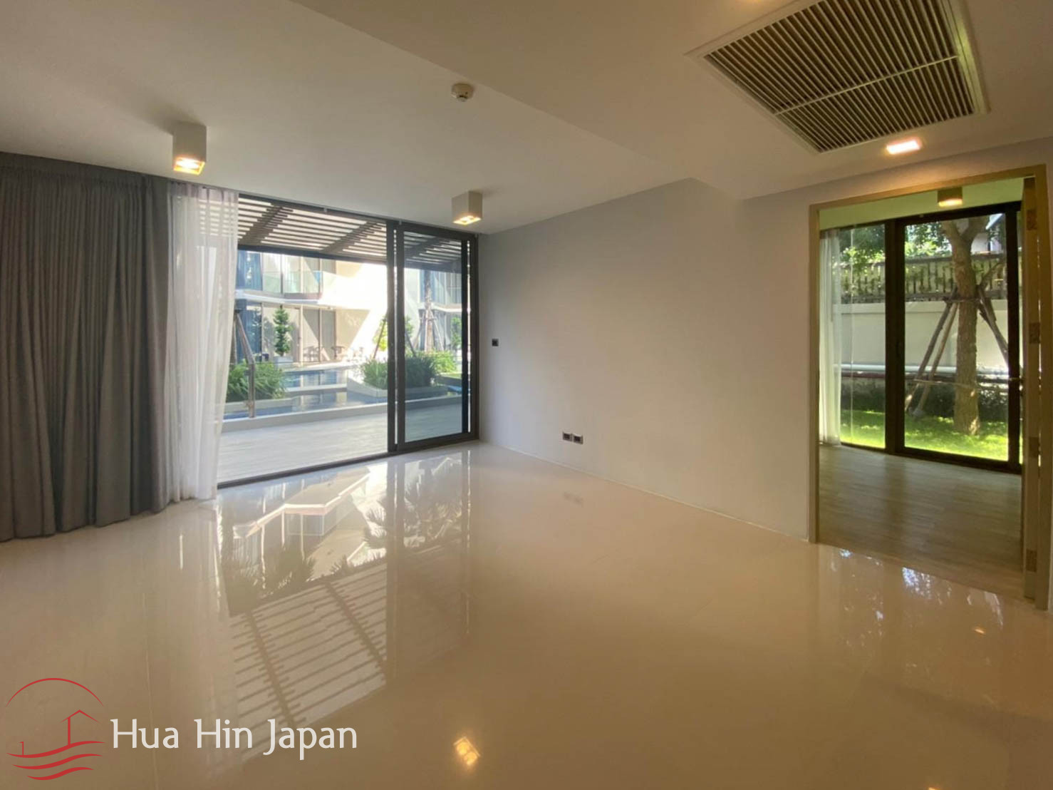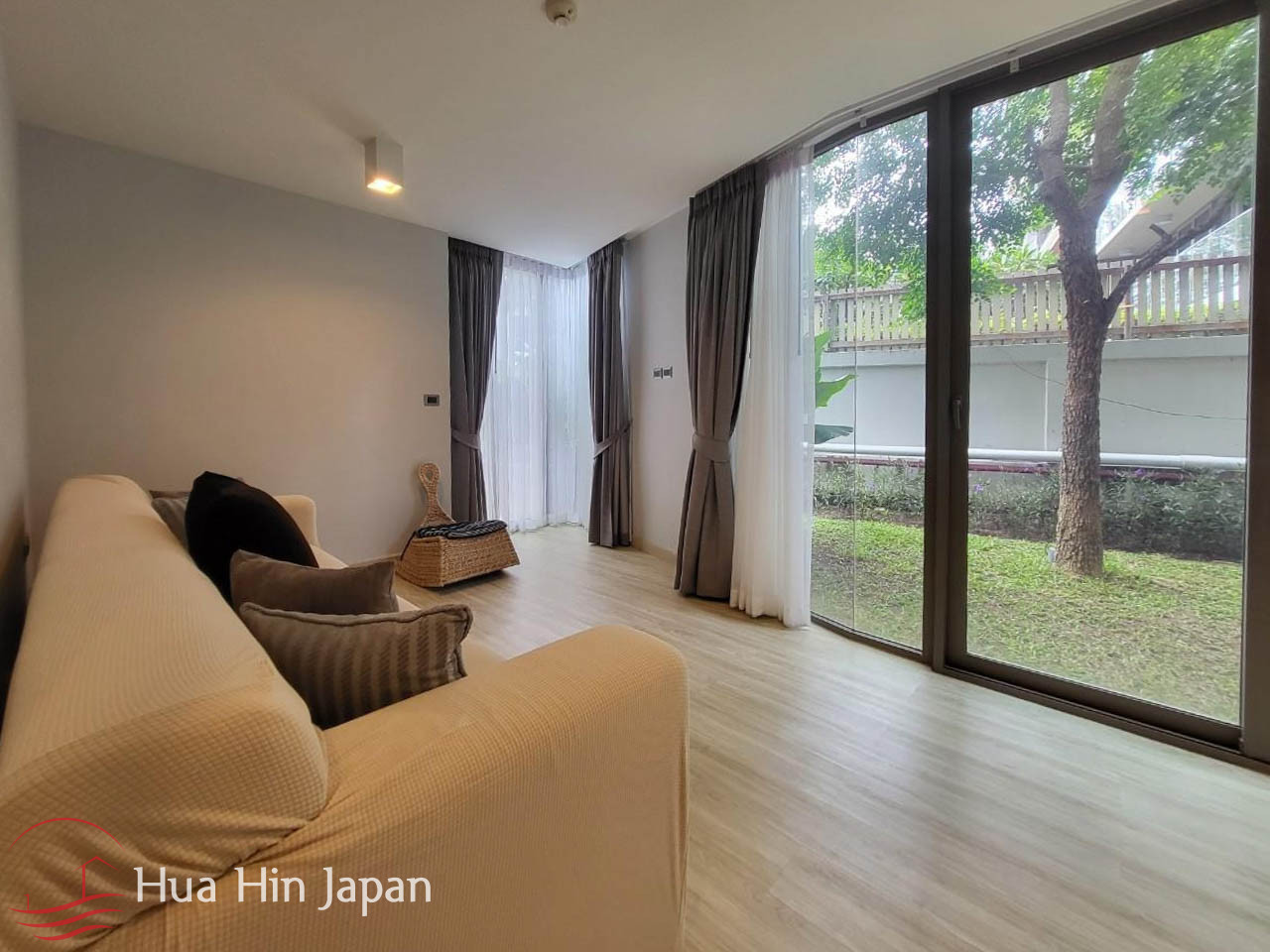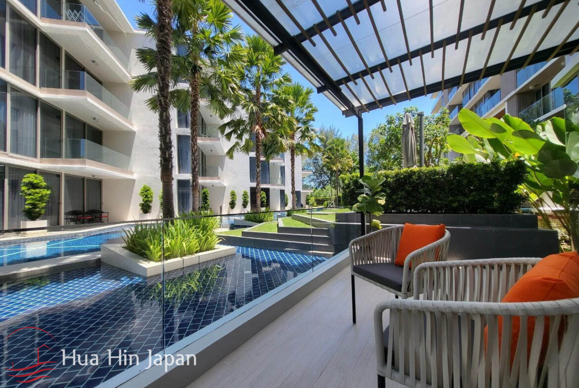 This 2 bedrooms unit is in a newly finished luxury condominium in South end of Khao Takiab, very close to the beach and right next to the golf course.