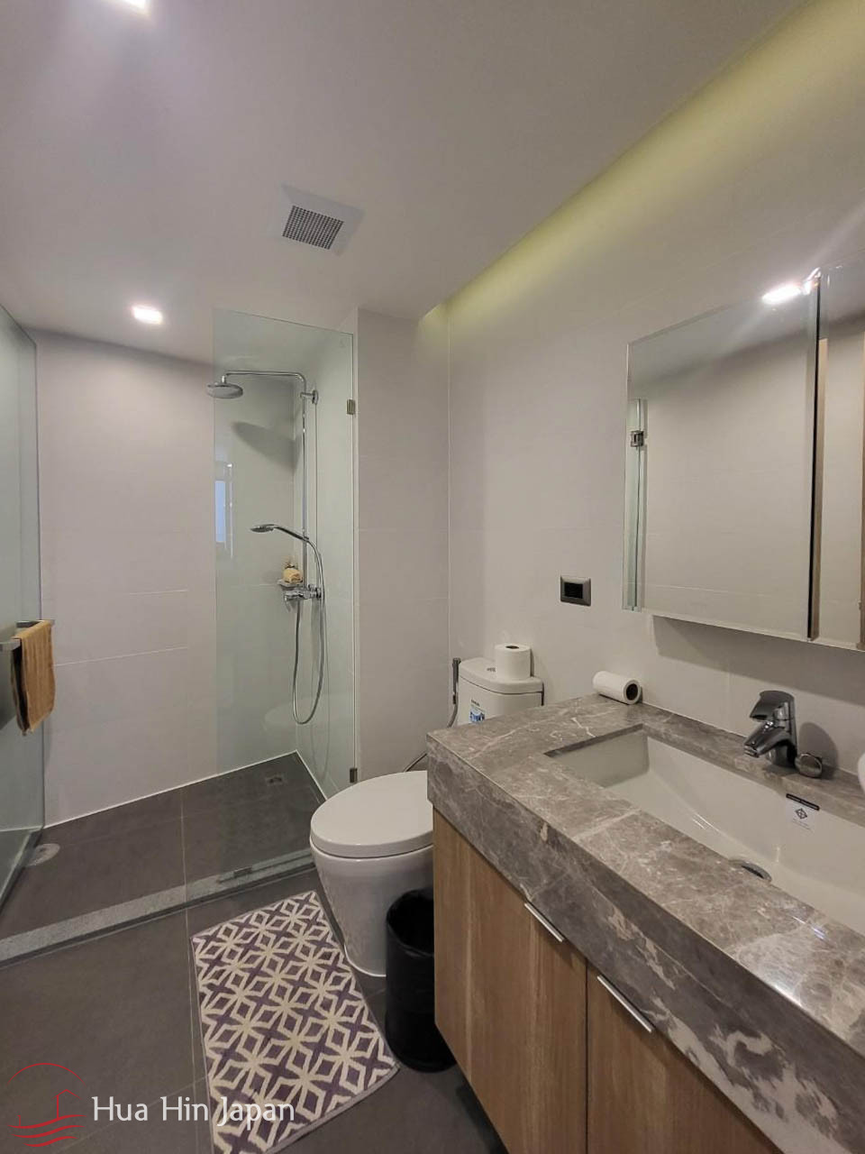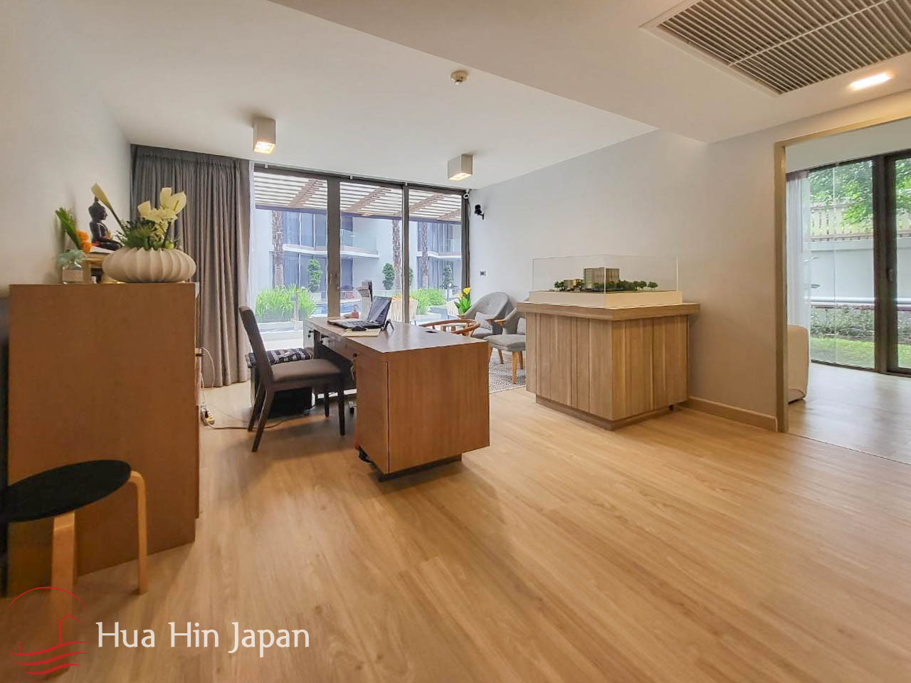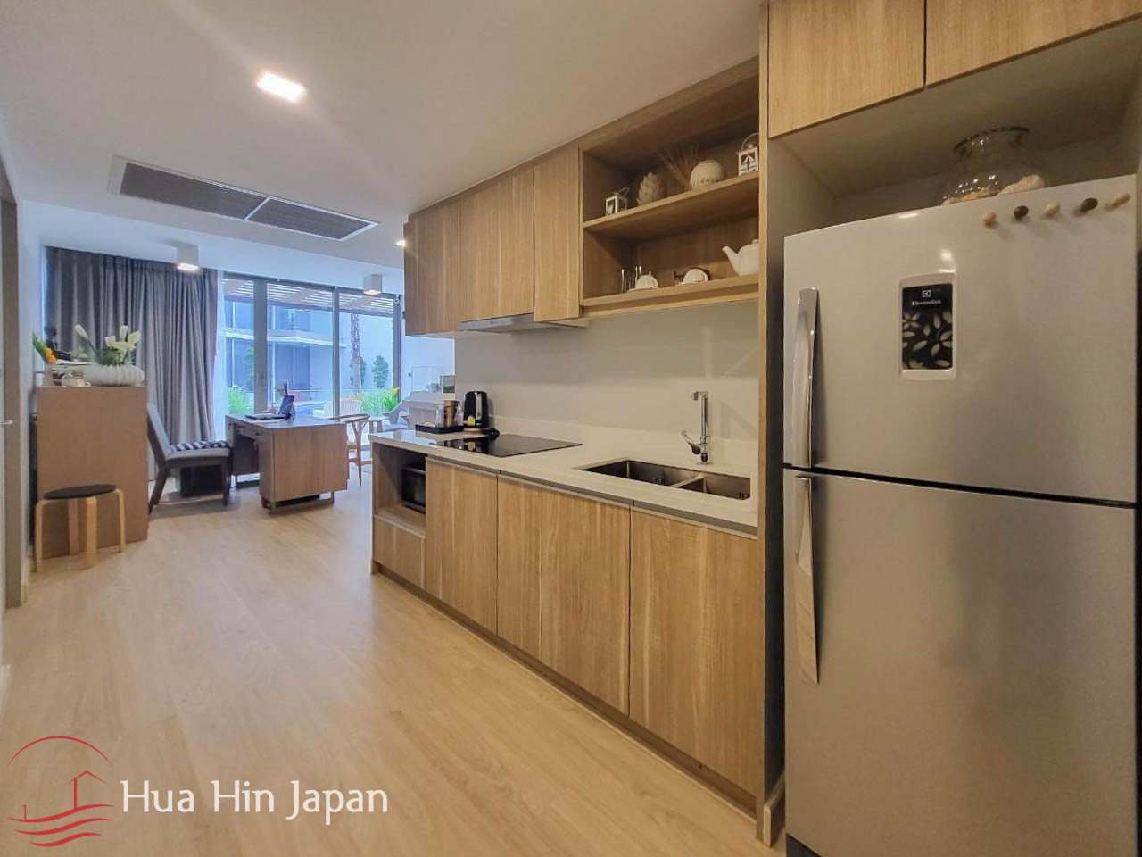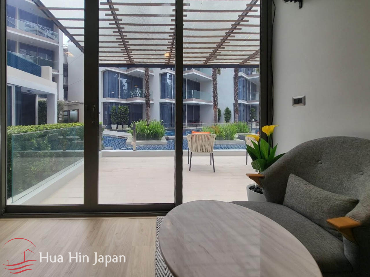 This 2 bedrooms unit is in a newly finished luxury condominium in South end of Khao Takiab, very close to the beach and right next to the golf course.