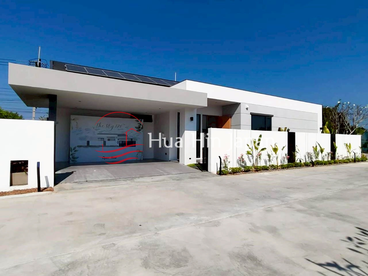 This listing represents a 4-bedroom, 4-bathroom luxury pool villa situated within The Sky 126 development in the Khao Tao – Nong Kae district of Hua Hin, Thailand. Identified by Property ID HSH1161-ฺB, this specific unit offers a total living area of 302.74 m² on a land plot of 516.48 m². The architectural design focuses on modern functionality, privacy, and integration with the tropical coastal environment.