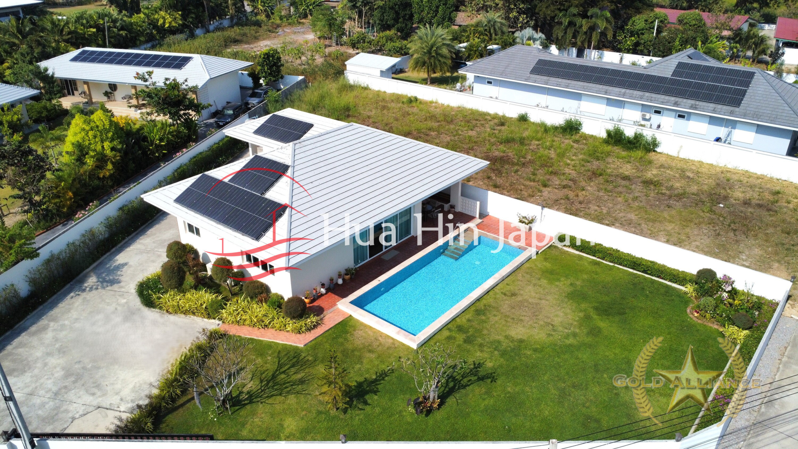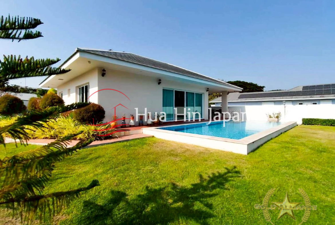 This 2-bedroom, 2-bathroom pool villa, completed in 2022, offers a modern living experience in the tranquil Hin Lek Fai area of Hua Hin. Set on an expansive 800 sqm plot, the property combines sustainable technology with a premium location near world-class leisure and education facilities.