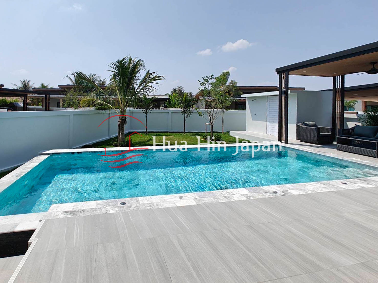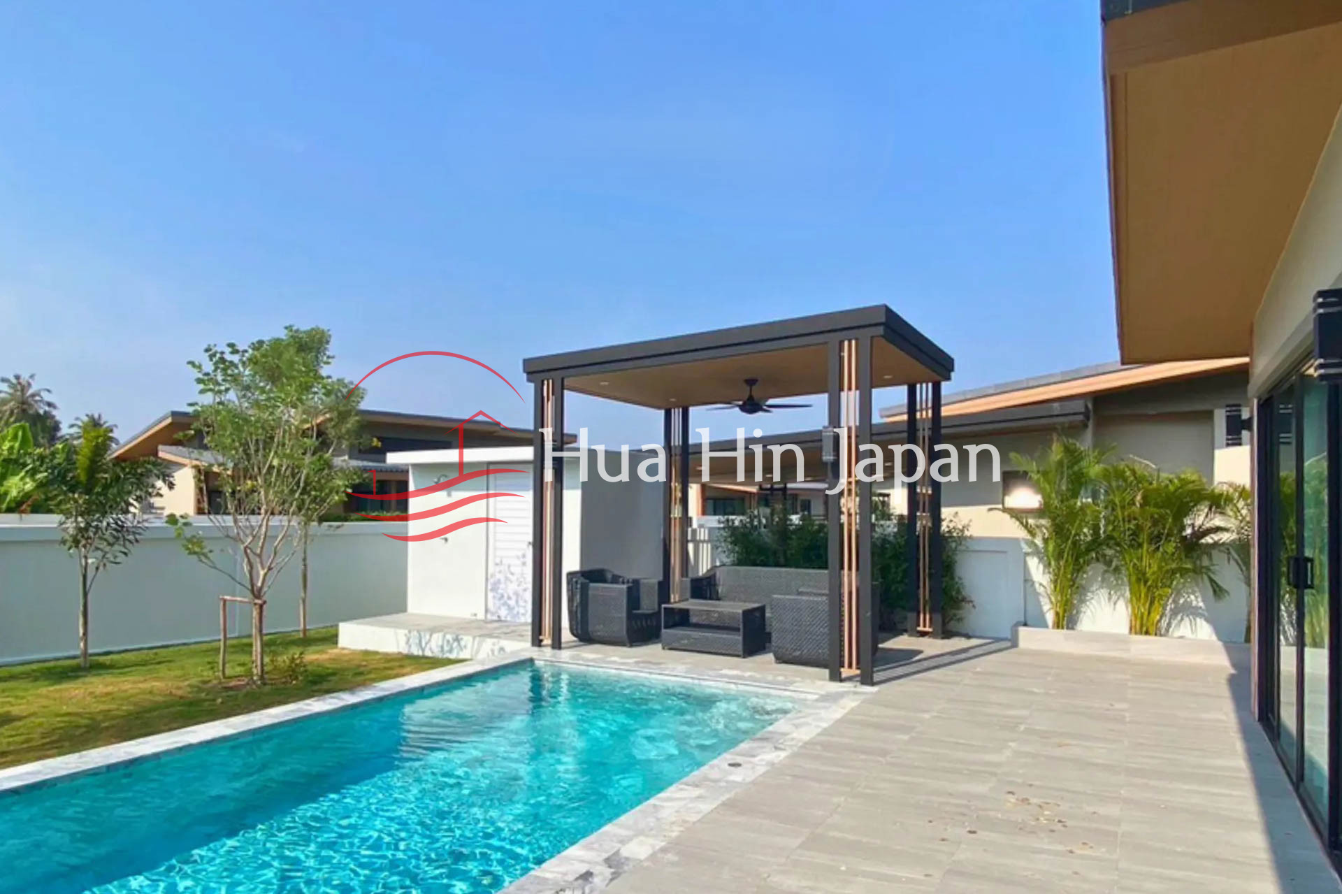 Modern 3-bedroom pool villa in Anchan Gardens offers a private tropical setting with practical design and comfortable long-term living. Located in Hin Lek Fai near Black Mountain, the property provides a quiet residential environment with easy access to Hua Hin town.
