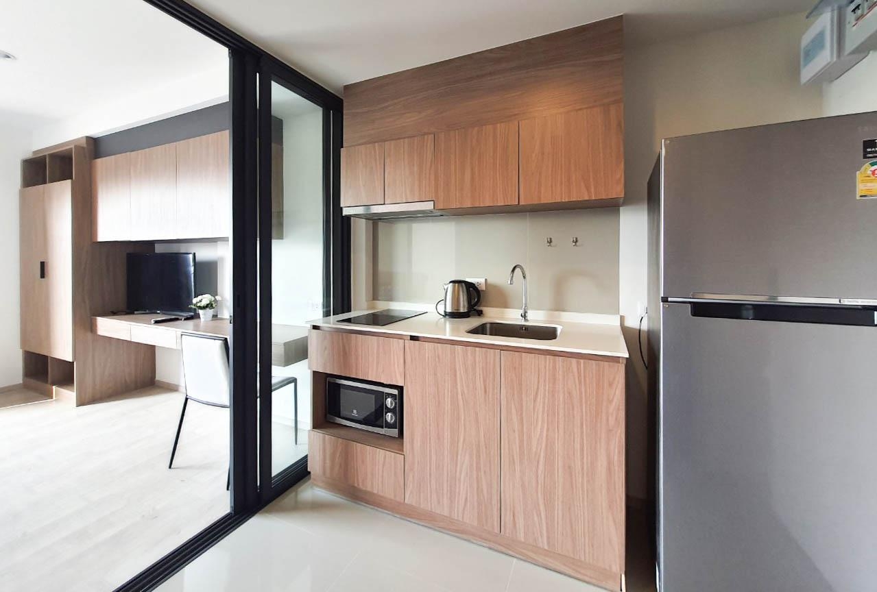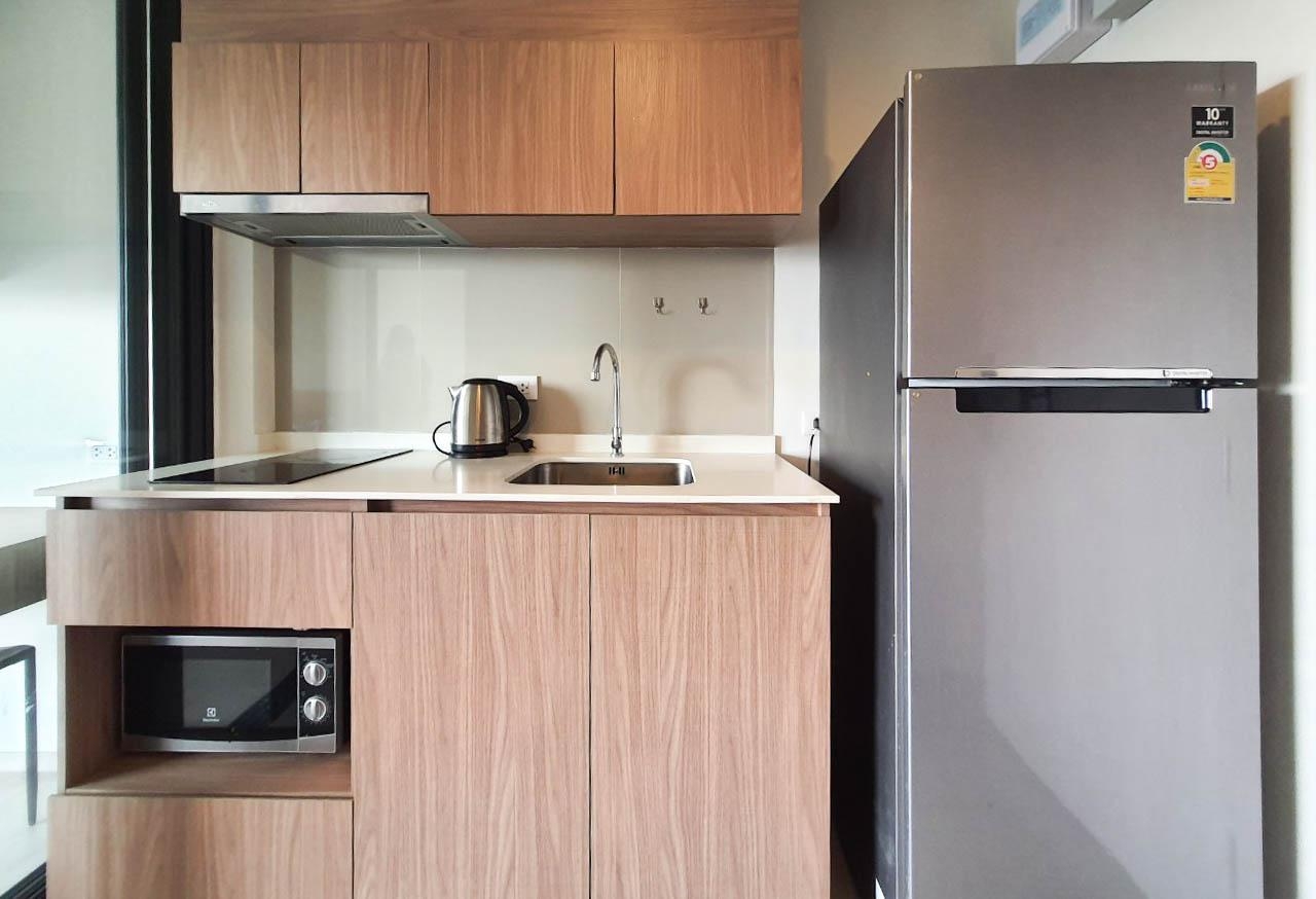 The room offers kitchen with cook top, fridge, microwave and washing machine on balcony.